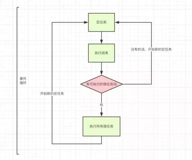 setTimeout和setInterval会进入相同的Event Queue。 事件循环的顺序,决定js代码的执行顺序。进入整体代码(宏任务)后,开始第一次循环。接着执行所有的微任务。然后再次从宏任务开始,找到其中一个任务队列执行完毕,再执行所有的微任务。听起来有点绕,我们用文章最开始的一段代码说明: