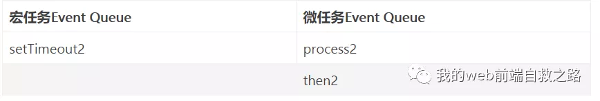 第二轮事件循环宏任务结束,我们发现有process2和then2两个微任务可以执行。
