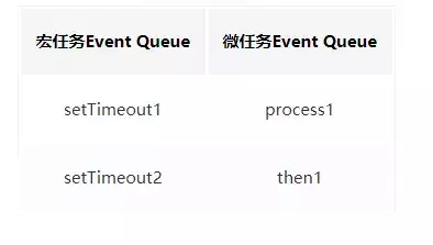 setTimeout,其回调函数被分发到宏任务Event Queue中,我们记为setTimeout2。