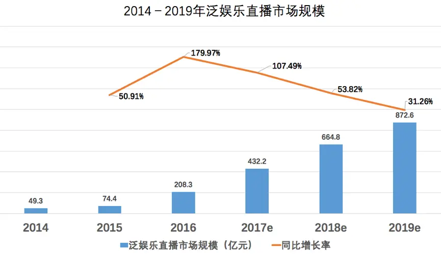 2016年泛娱乐直播市场规模达到208.3亿元,同比增长180.1%,更有数据机构预测2020年市场规模可突破1000亿元。视频直播行业的迅速崛起的原因,一是直播门槛降低,带动用户迅速提升;另一个原因直播形式的信息内容传递,更受到用户欢迎,线上支付便捷性也让用户更愿意为之花费。