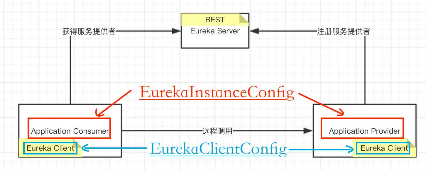 - EurekaInstanceConfig,重在应用实例,例如,应用名、应用的端口等等。此处应用指的是,Application Consumer 和 Application Provider。