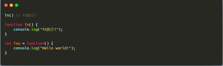 这种等号右侧是一个function然后再赋值给一个变量的形式就叫做函数表达式。那么这两种定义形式有什么区别呢?下面请看