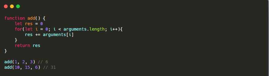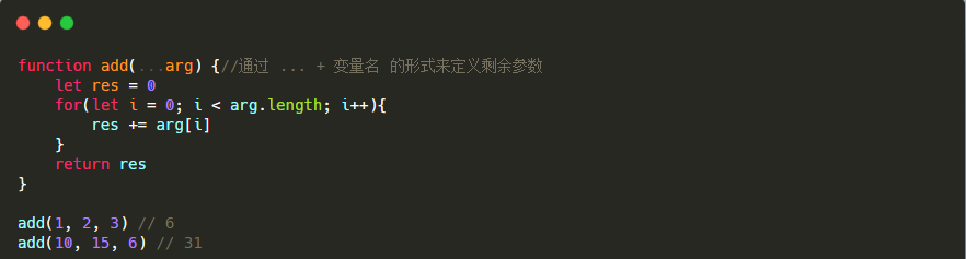 函数可以定义参数接收对应的值并对其进行各种操作这里就不说明了。ES5函数内部有一个关键字叫做arguments用来接收对应的实参,因为有时候会存在实参个数不确定的情况,就会导致形参个数也不确定,这个时候arguments就派上用场了。简单举个例子求传入数字的和并返回: