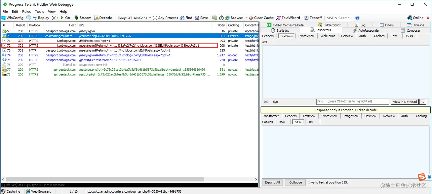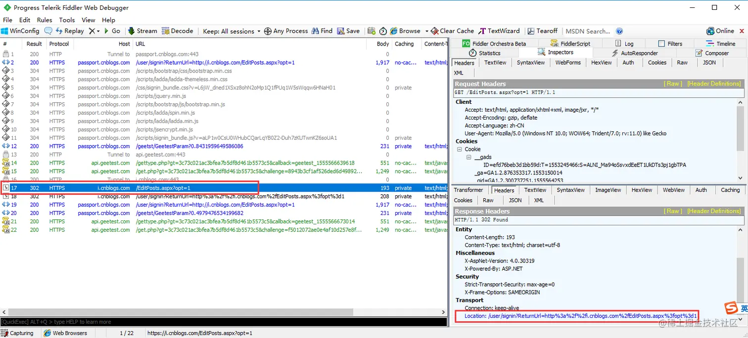4.退出博客园登录,把刚才我的随笔这个地址i.cnblogs.com/EditPosts.a… 302,浏览器地址栏瞬间刷新跳到登录首页去了