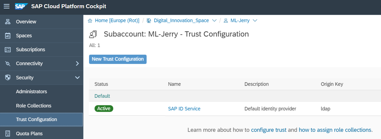 然后选择Security->Trust Configuration, 点击SAP ID Service超链接: