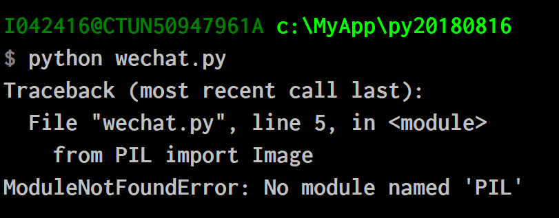 在python文件wechat.py里使用这个库的时候,如果遇到如下的错误消息:ModuleNotFoundError: No module named PIL