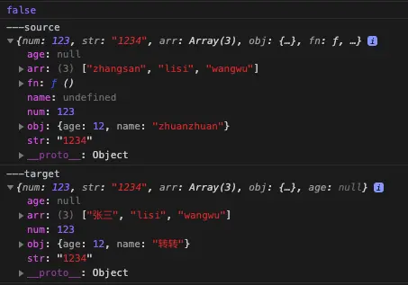 console.log(target === source);