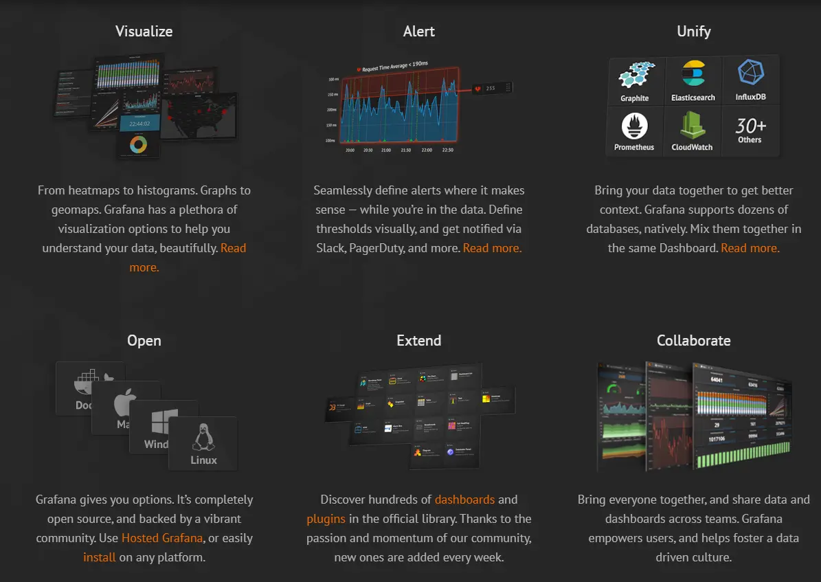 - 支持多种多样的图表和界面展示,比如Grafana等。