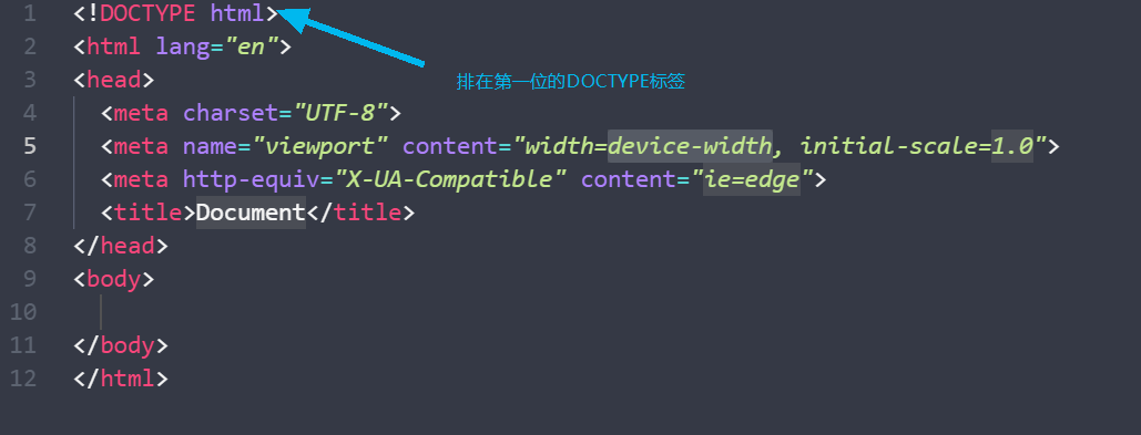 - 标签位于文档的最前面,