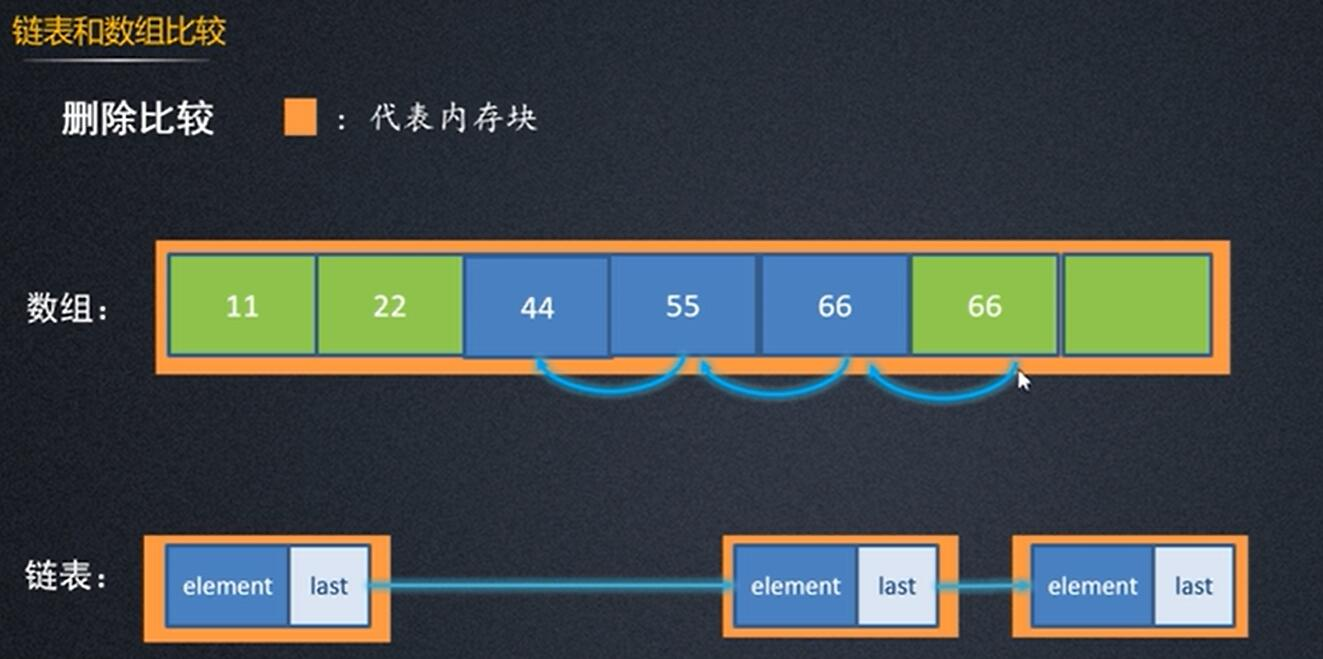 LinkList底层为双向链表,每一个节点块为一个内存区域,当需要增删时,只需要断开该节点,释放此小块内存空间,指针连接下一个元素即可,不需要对所有元素进行移动,所以增删效率高。
