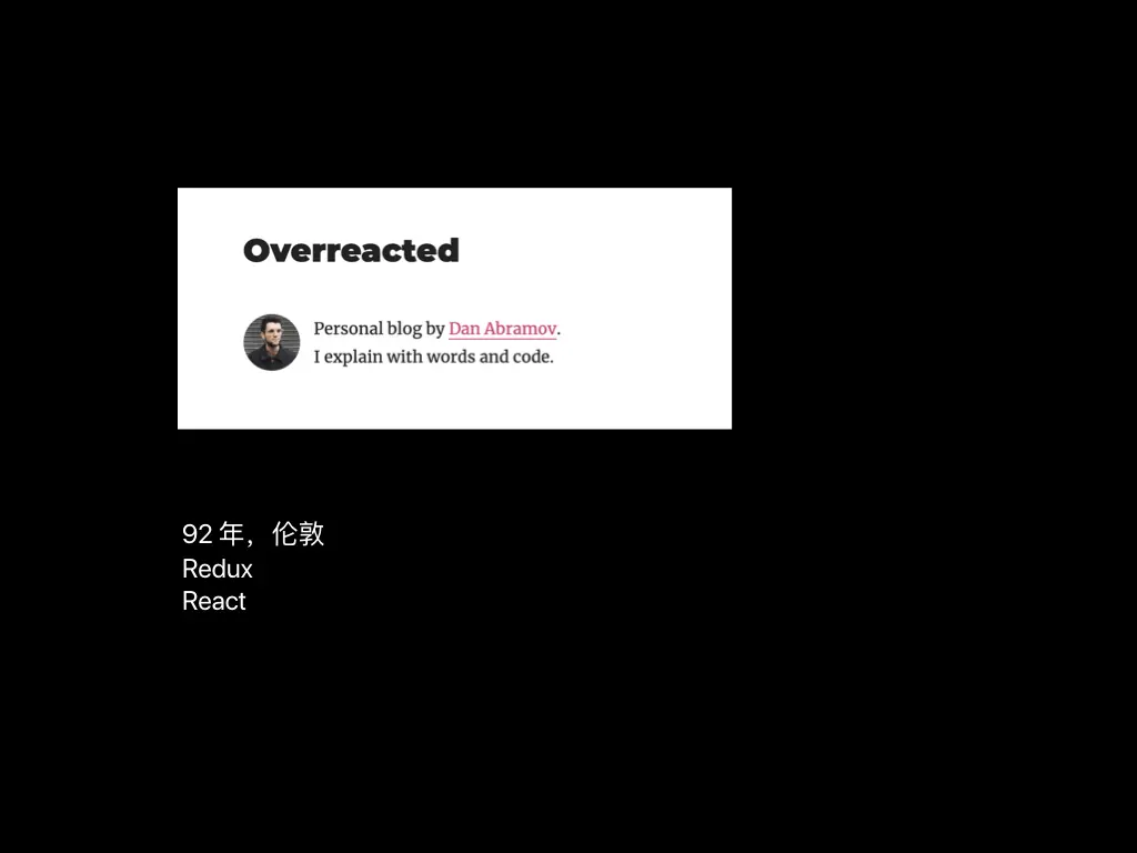 丹 · 阿布拉莫夫,92 年,生活在伦敦,Redux 作者,后加入 React 团队。