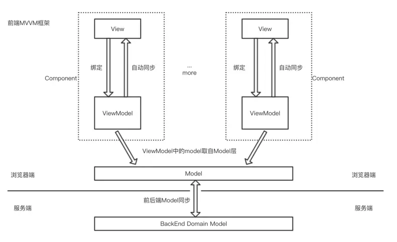 Model 层: 对应数据层的域模型,它主要做域模型的同步。通过 Ajax/fetch 等 API 完成客户端和服务端业务 Model 的同步。在层间关系里,它主要用于抽象出 ViewModel 中视图的 Model。