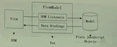 view层执行一个数据的双向绑定,view触发后告诉viewmodel对象的dom listeners事件的监听机制,从而更新model层中的数据,当model层中的数据发生变化后,交给数据双向绑定机制,也会告诉view层要更新数据。