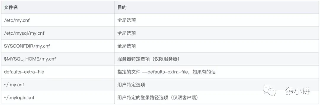 mysql --help | grep 'Default options' -A 1可能会有一堆的 my.cnf,加载的优先级顺序如下,别傻傻分不清。