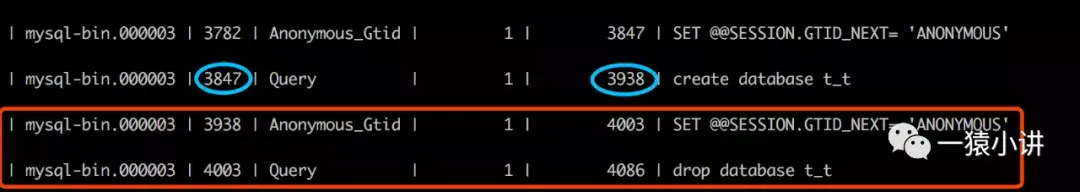 show binlog events in 'mysql-bin.000003';确诊:从 binlog 的事件中可以看断出执行 Python 菇凉执行 drop database t_t 语句前的 position 节点为 3938,所以恢复开始的 pos 节点为 3847,停止的 pos 节点为 3938 。