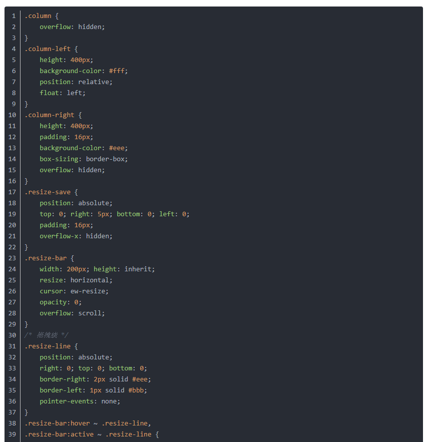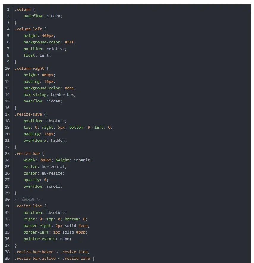 利用浏览器非overflow:auto元素设置resize可以拉伸的特性实现无JavaScript的分栏宽度控制。