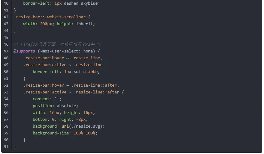 后来经过我的研究发现,resize属性的拖拽bar和滚动条的拖拽bar是一个体系里面的东西,只需要对滚动条进行自定义,就能间接设置resize bar的尺寸。