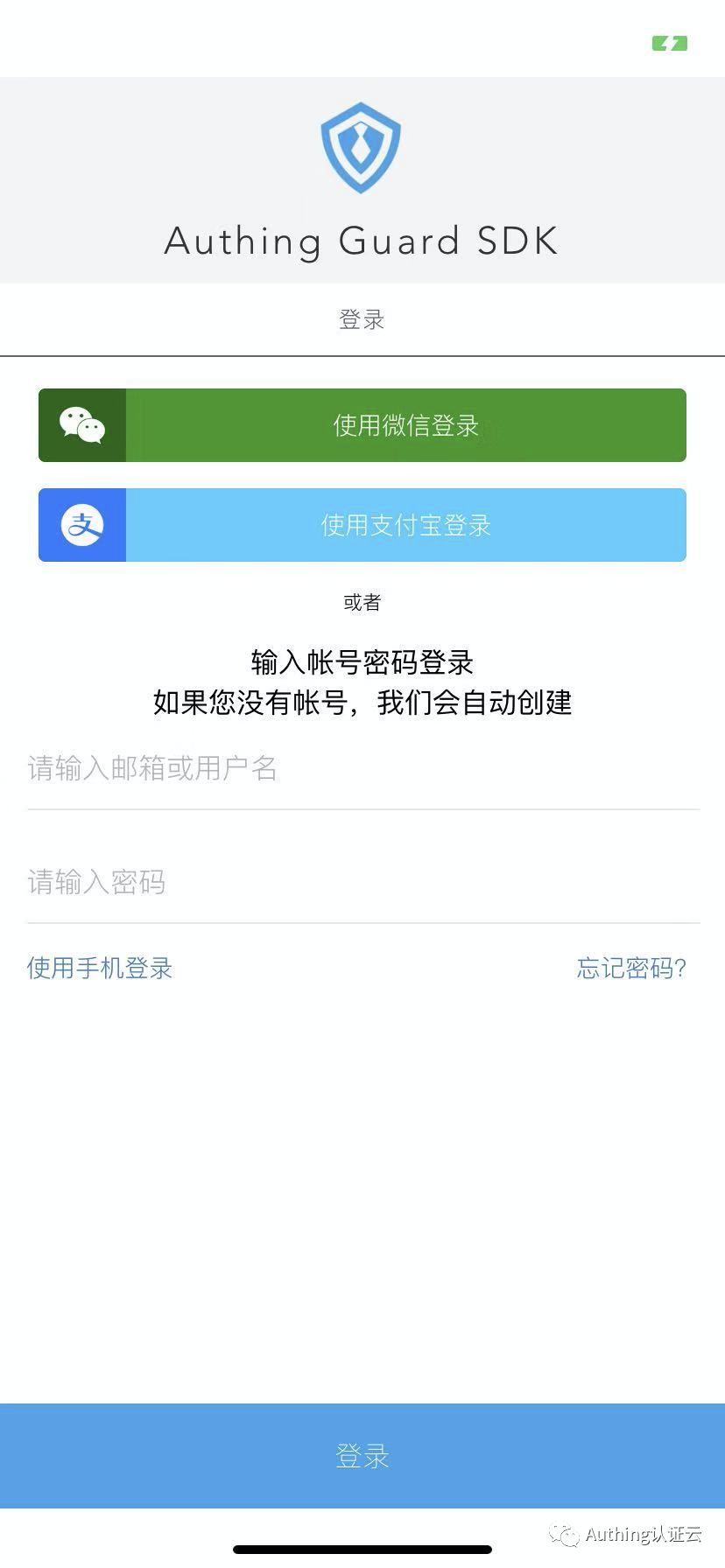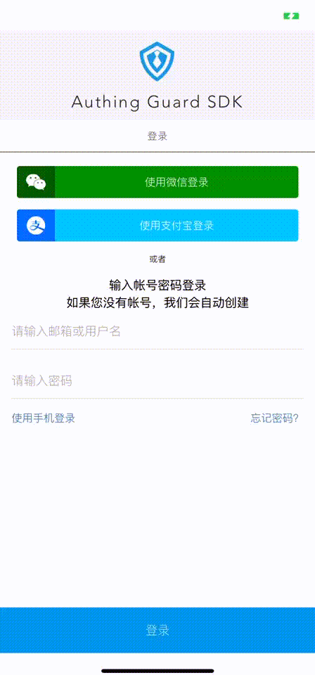 而现在,Authing 将 Guard 完整迁移到了移动端!借助我们的 authing-rn-sdk, 开发者同样可以在极短的时间内完成一个 Native 端的认证表单: