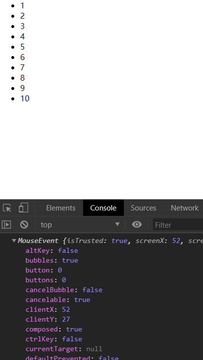 01 02 03 04 05 06 07 08 09 10 11 12 13 14 15 16 17 18 19 20 21 22 23 24 25 26 27 28 29 30 31 32 33 34 35 36 37 38 39 40 41 42 43 44 | <!DOCTYPE html><html><head> <meta charset="UTF-8"> <meta name="viewport" content="width=device-width, initial-scale=1.0"> <meta http-equiv="X-UA-Compatible" content="ie=edge"> <title>Document</title></head><body> <ul> <li>1</li> <li>2</li> <li>3</li> <li>4</li> <li>5</li> <li>6</li> <li>7</li> <li>8</li> <li>9</li> <li>10</li> </ul></body><script> /* 点击某个li让他添加上一个背景颜色。 原始做法我们是采用一个for循环给每一个li绑定一个点击事件 |