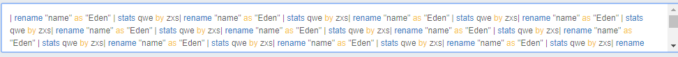 一个 | 字符只能匹配一个命令,如果现在有两个可变色的命令如rename和stats,那么 | rename stats,rename变色后,它之后的stats不在变色,除非使用 | 开启一个新的命令输入,如 | rename | stats。