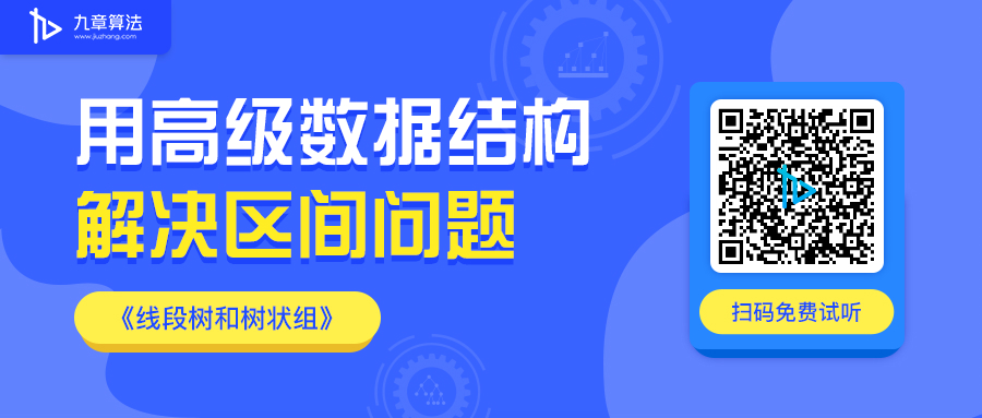 戳我免费试听后,添加九章Sunny微信jiuzhang15,回复【掘金线段树】+ 试听报名截图即可免费获得全系列课程。