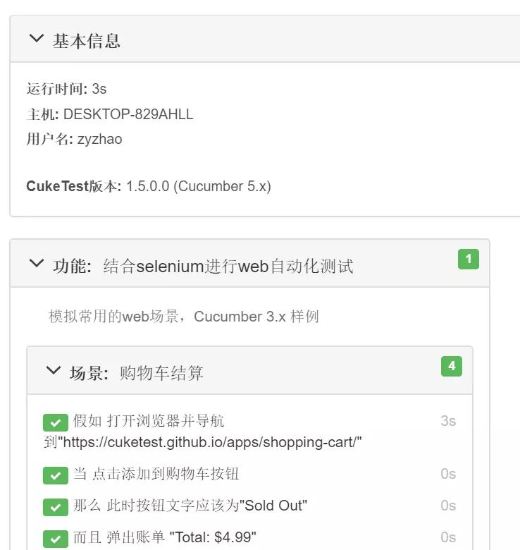 上面用例可以轻松转为UAT测试场景,借助CukeTest(cuketest.com)工具,可以方便的编辑基于gherkin标准的场景描述,并将这些场景与自动化代码关联起来,实现UAT自动化。
