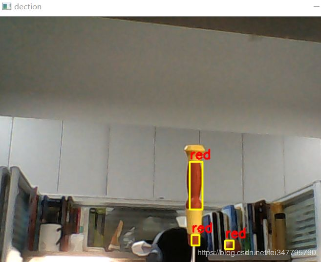 如图所示,我们将会检测到红色区域