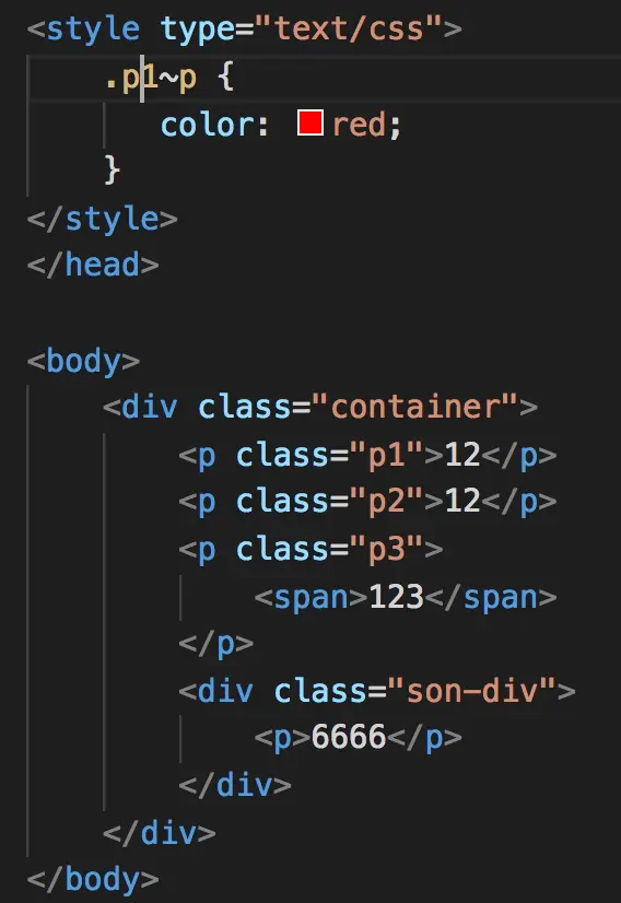 (2)兄弟选择器(~):选择当前元素的合乎规则所有兄弟元素