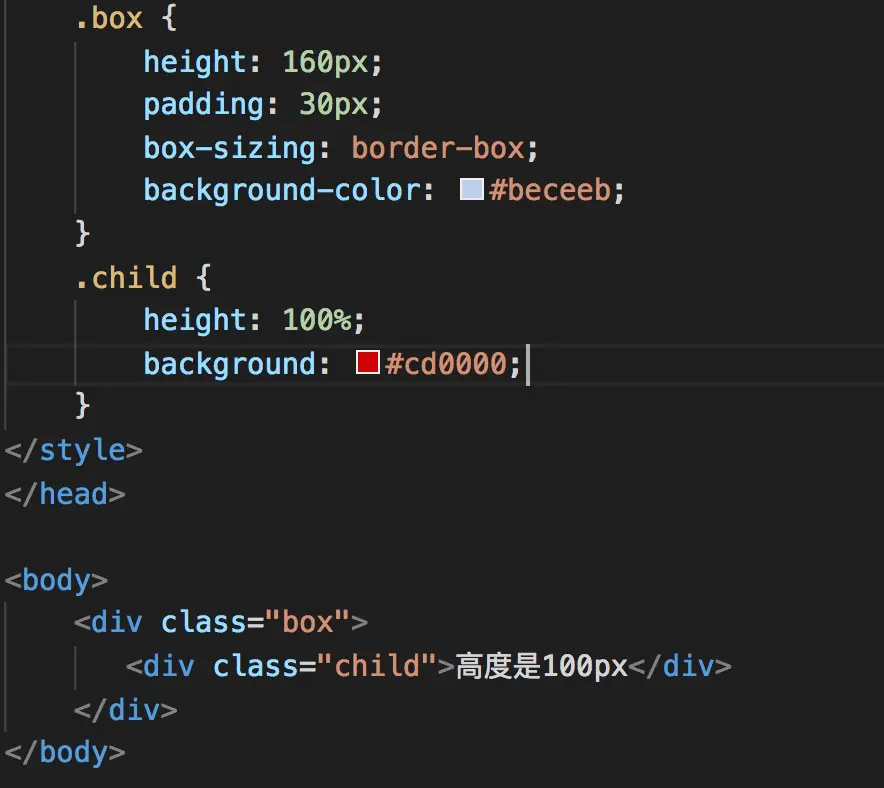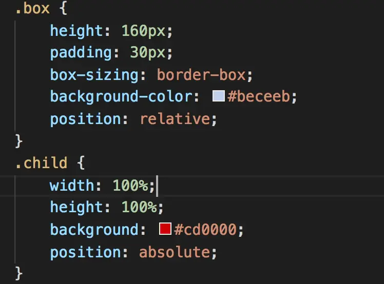 此时的height: 100%就会有计算值。即使祖先元素的height计算为auto也是如此。需要注意的是绝对定位元素的百分比计算和非绝对定位元素的百分比计算是有区别的。绝对定位的宽高百分比是相对于padding-box。非绝对定位的元素则是相对于ocntent-box计算的。对比一下 非绝对定位元素