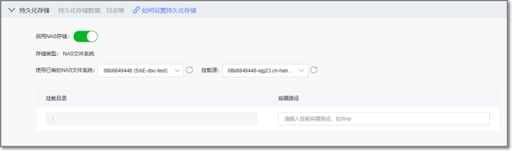 我们知道,默认情况下,容器的数据都是非持久化的,在容器销毁以后数据也跟着丢失,在很多场景下数据丢失意味着线上灾难性事件。SAE 支持NAS 存储功能,解决了应用实例数据持久化和实例间多读共享数据的问题。