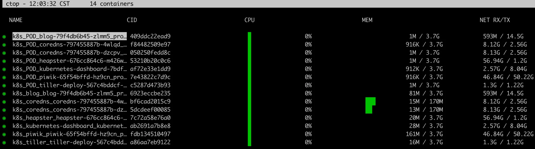 ctop 展示如下容器指标