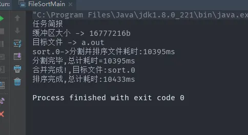 根据缓冲区的大小读入相应的数据量,并把他们转为整数数组,进行排序,并写入文件,重复这一步直到原始数据文件中没有数据可读。