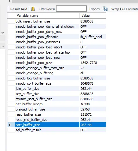 我: 缓冲区 = buffer,根据mysql的一贯传统,以下语句应该可以查到