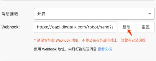 复制的 webhook 中 https://oapi.dingtalk.com/robot/send?access_token={YOUR_TOKEN}, {YOUR_TOKEN} 就是要填入的 token。