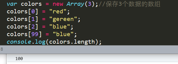 - 把一个值放在超出当前数组大小的位置上时,会重新计算数组的长度值,长度值等于最后一项索引+1