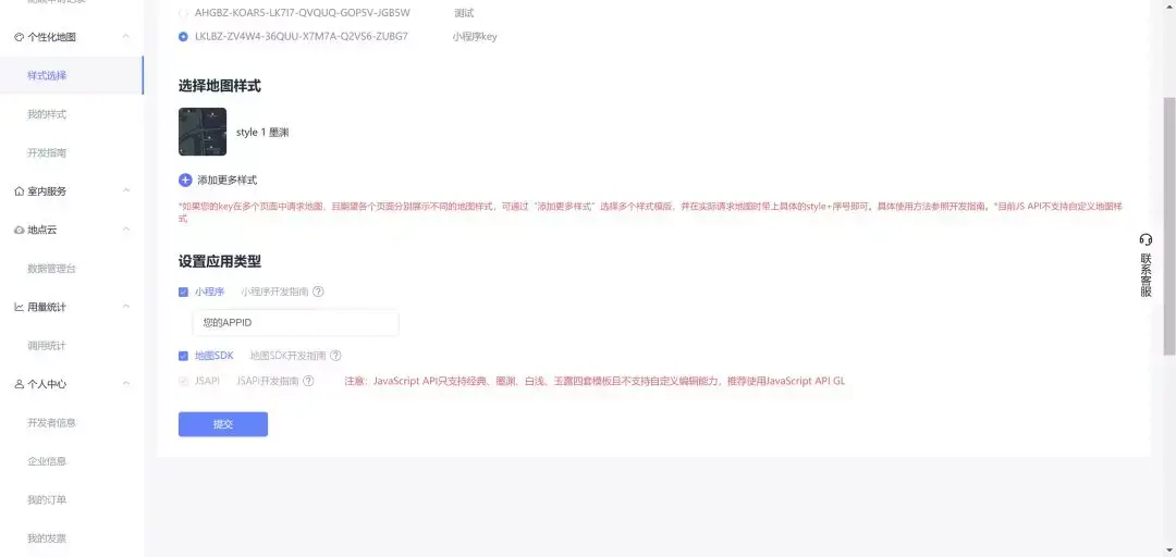同时针对微信小程序的开发者,腾讯位置服务通过小程序开发者工具为您提供了个性化地图服务,满足适配暗色模式的需要。您只需注册开发者后在个性化地图中选择墨渊样式并填写小程序的App ID,即可把暗色地图运用到小程序之中。具体使用可参照小程序个性化地图使用指南