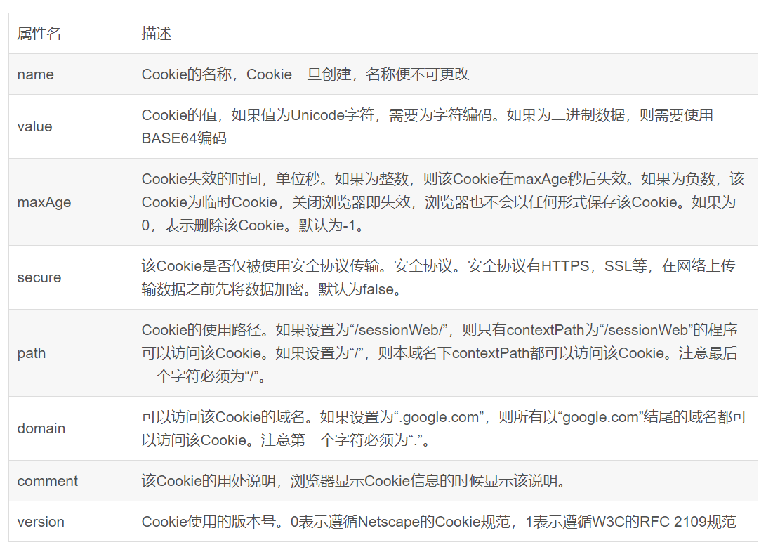 cookie常用属性: