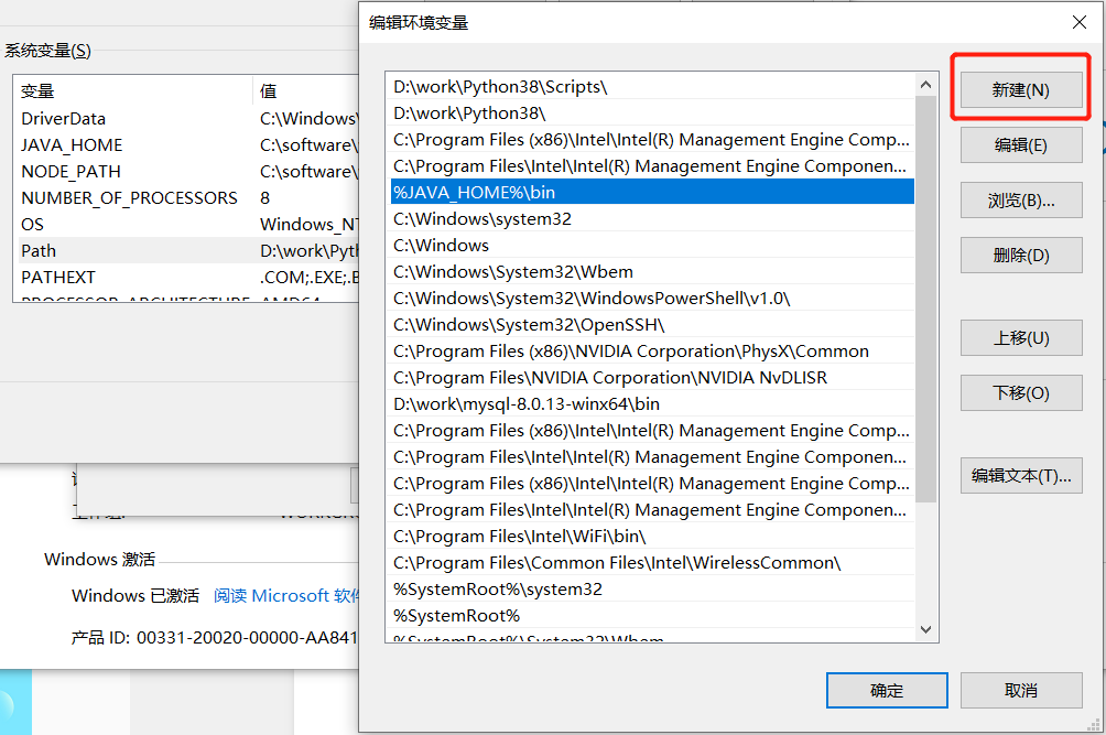 修改Path环境变量,在里面新建%JAVA_HOME%\bin