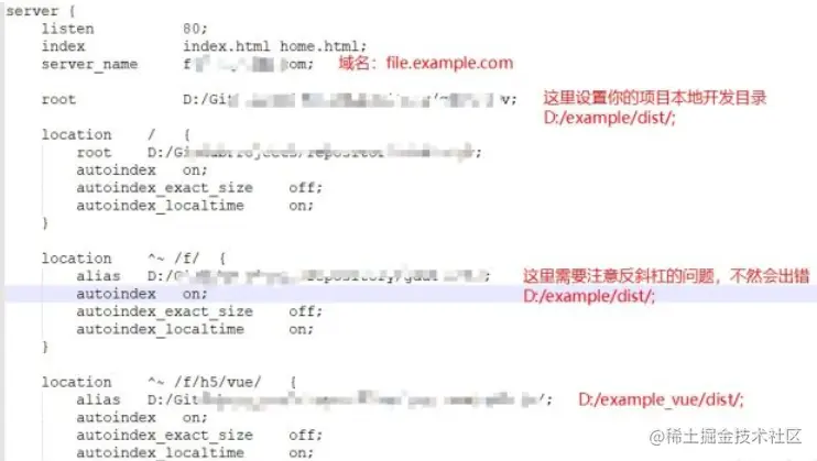 为你的file.example.conf添加以下配置内容,可以参考复制nginx.conf
