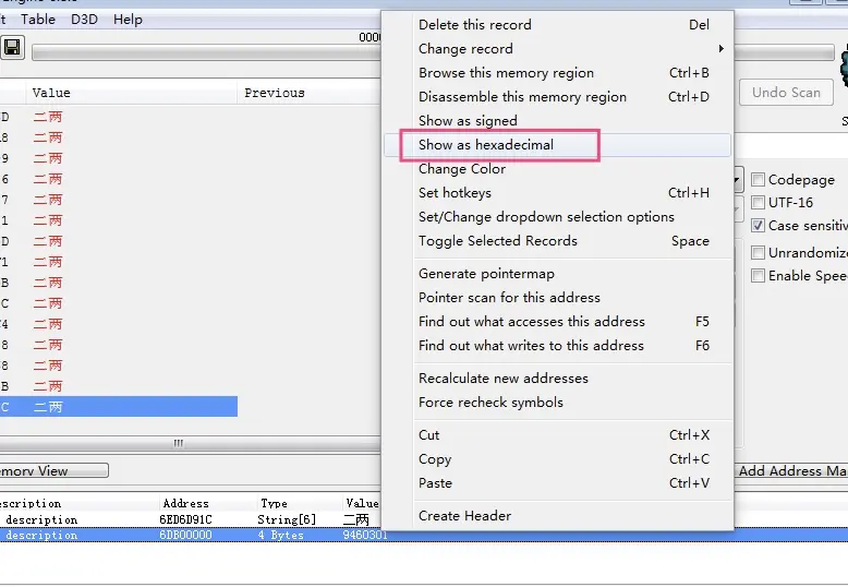 打开 Cheat Engine 点击 Add Address Manually,手动找地址