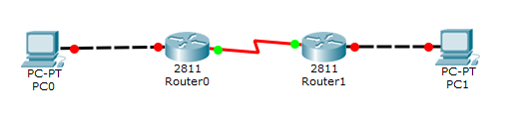 更改router0和router1上的serial接口协议(默认是HDLC),这里要将其改为PPP协议。我们以router0为例演示,router1的配置方法相同。
