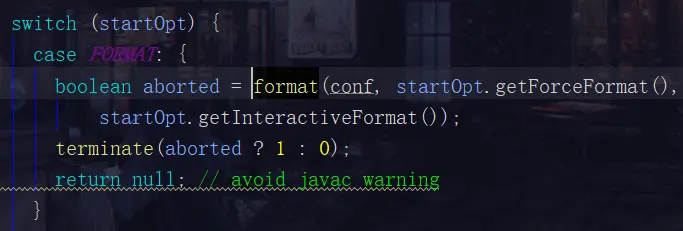 boolean aborted = format(conf, startOpt.getForceFormat(),