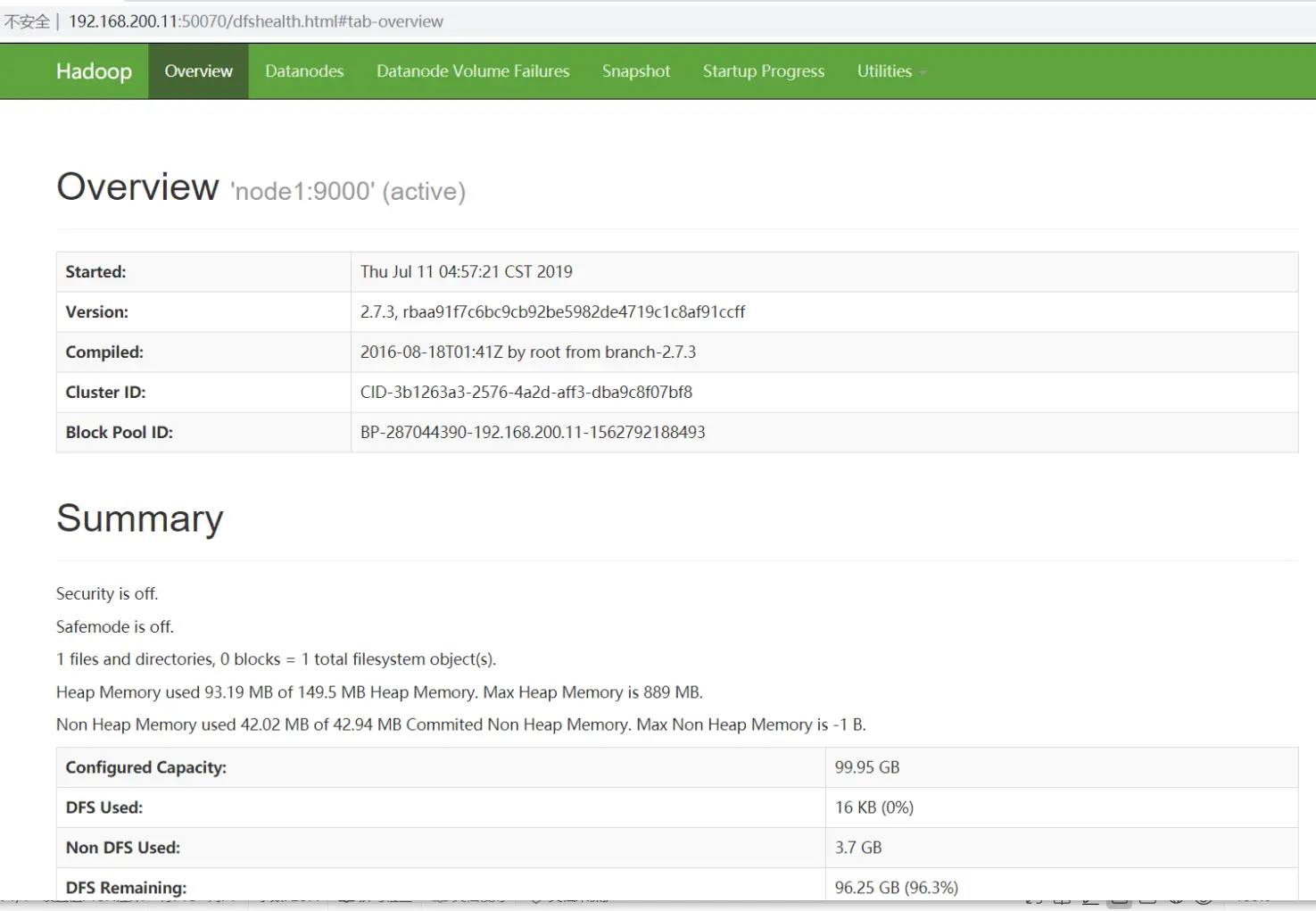 如果空间不足,它就会打印一段话,这段话在我们日常的公司集群环境中不太可能看到,但是如果我们是自己搭建的集群进行学习时就会看到,这个时候就是我们的虚拟机的空间不足,虽然集群服务正常启动,可是集群无法正常工作。