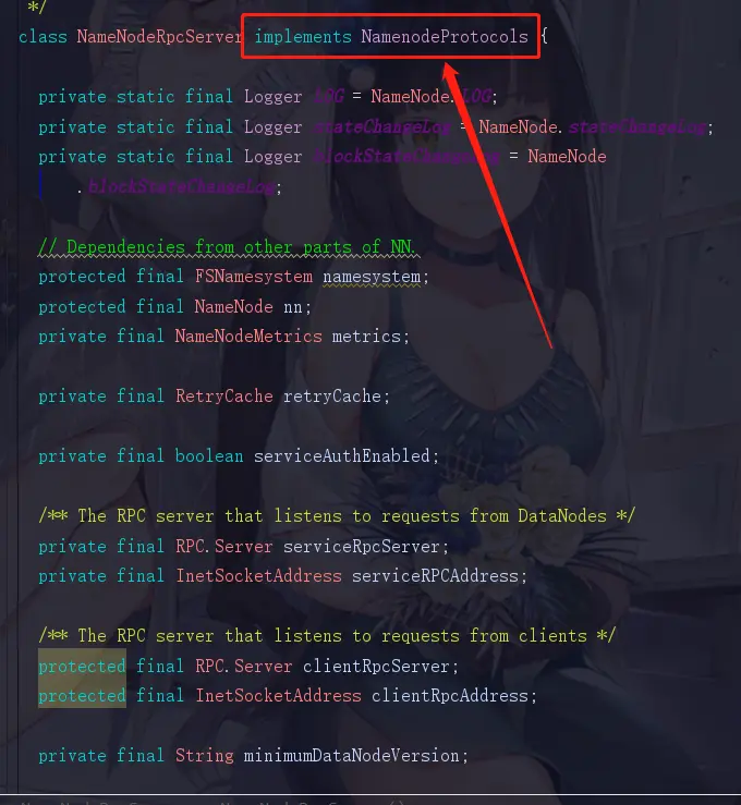 相信这就是我们想要看到的,它确实实现了一个NamenodeProtocols,感觉快要看到真相了是吧,再点进去