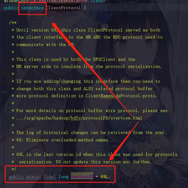 还记得我们开头说判断RPC的依据吗,3.协议说得直白点就是一个接口,但是这个接口必须存在versionID,好的我们记住这句话,再点进NameNodeRpcServer