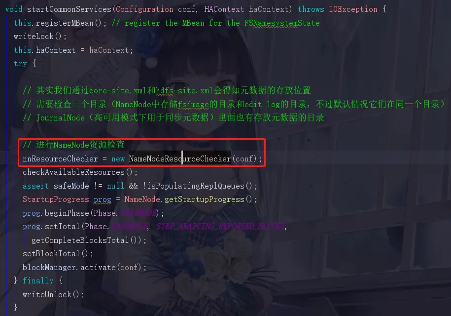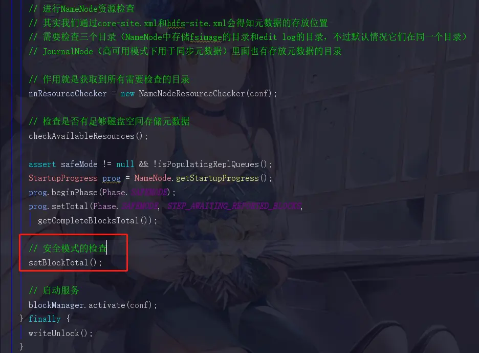 这一篇就是NameNode的启动的大致流程了,当然有很多细节的部分我们仍未深究或者是一笔带过,这些细节有些不重要有些是之后再进行补充的,截图真的是非常麻烦,希望这些无论是对你,对我都会有所收获。