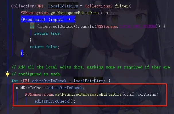 这里我也可以补充一下,我们需要判断告警的目录就在下面的getNamespaceEditsDirs(conf)中,一直点进去就可以看见我们刚刚提到的,需要检查的三个目录(NameNode中存储fsimage的目录和edit log的目录和JournalNode的目录,这些参数全部都是定义在DFSConfigKeys.java中)