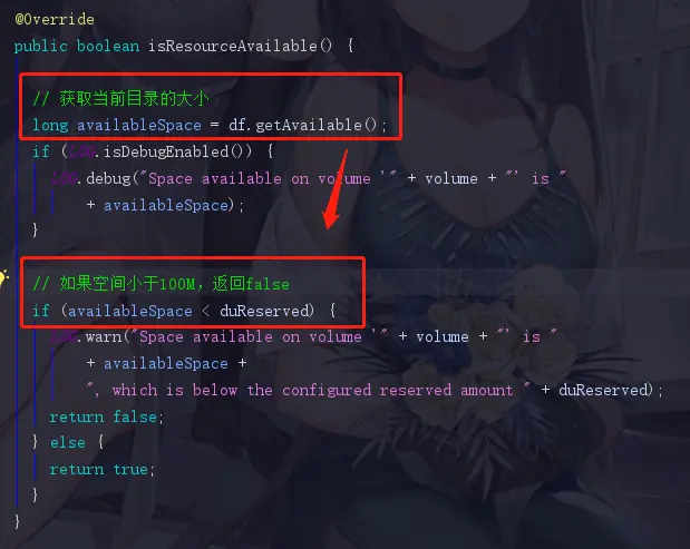 hadoop的方法命名总是如此地直白,hasAvailableDiskSpace直译过来就是有没有可用空间,再点击进去