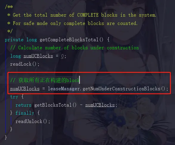 所以我们退回来,getCompleteBlocksTotal中,使用blockTotal总block数-numUCBlocks得出来的就是准备complete的block个数