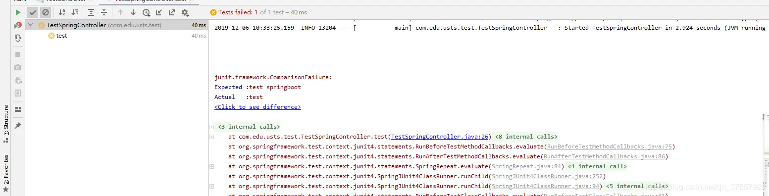 TestCase.assertEquals(this.testController.test(),"test springboot");